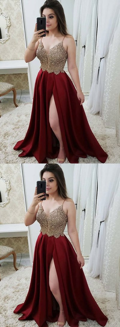 New Arrival A-Line Spaghetti Straps Long Burgundy Prom Dress