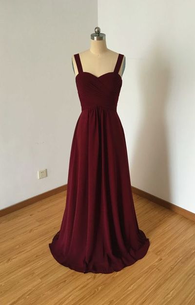 FYD 468,Burgundy Spaghetti Straps Long Chiffon Prom Dresses