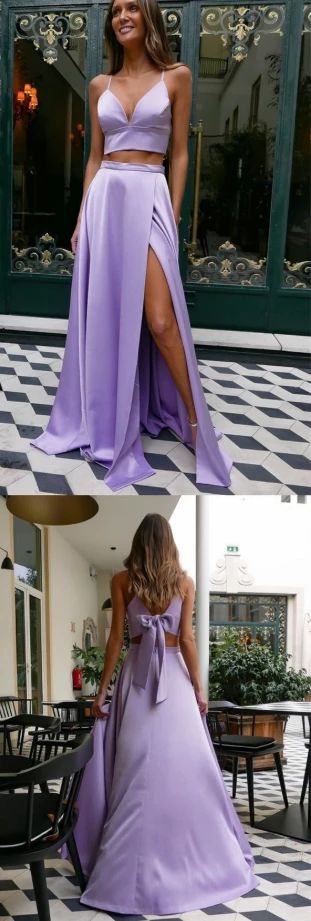 FYD 753,Simple Pretty Purple Prom Dress,A-Line Prom Gown,Satin Prom Dress,Two Pieces Prom Gown/ friday dresses in new fashion