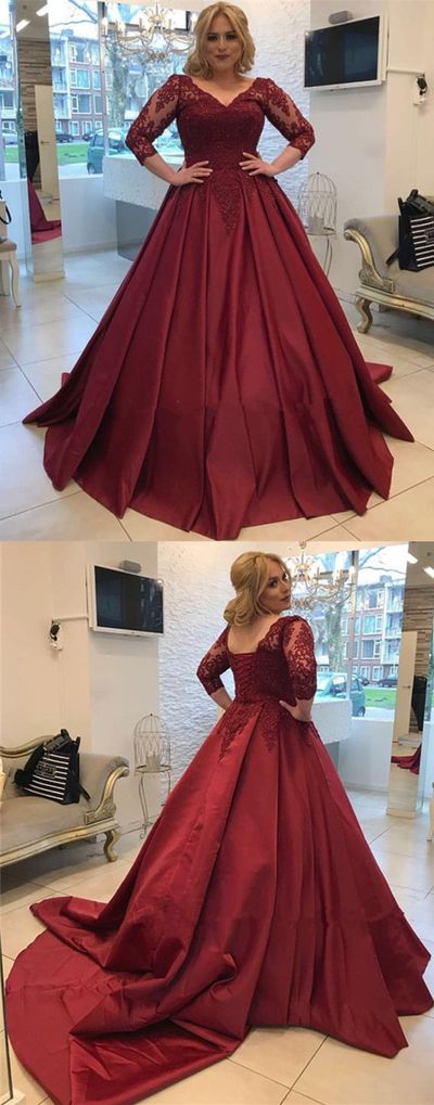 FYD196,Ball Gown Long Sleeve Burgundy Long Prom Dress