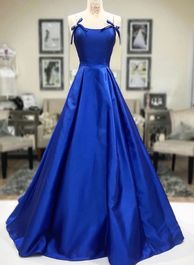 FYD041,Royal Blue Satin Prom Dresses V Neck Long Beaded Prom Dresses Long Evening Dress