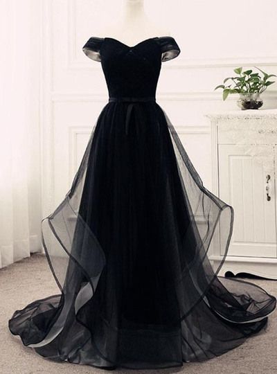 FYD070,Black tulle sweetheart neck off shoulder customize long ruffles evening dresses