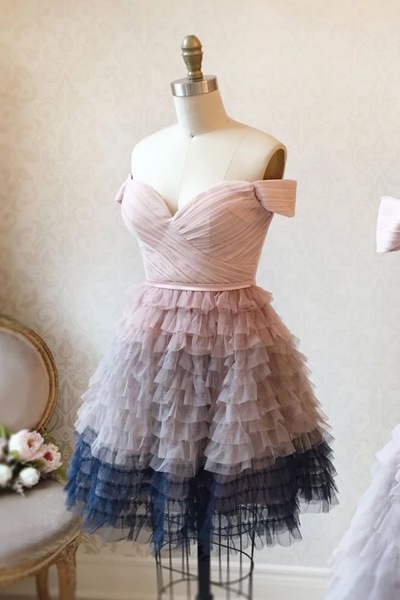 FYD072,Pink Tulle Short Dress, Short Off Shoulder Homecoming Dress pink short dresses