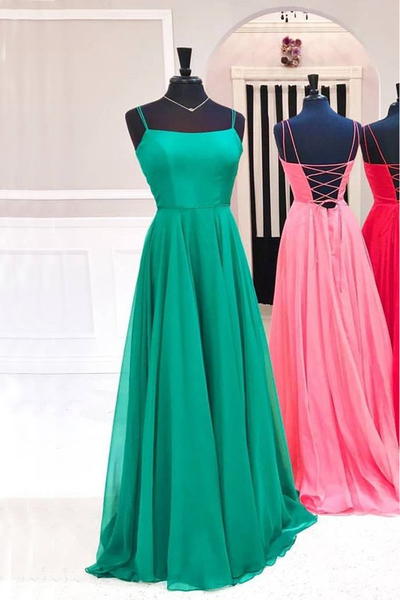 FYD075,Unique Green Satin Spaghetti Straps Long Lace Up Prom Dress