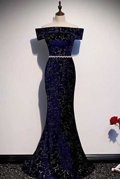 FYD092,Deep Blue Sequins Off Shoulder Long Mermaid Prom Dress, Formal Dress