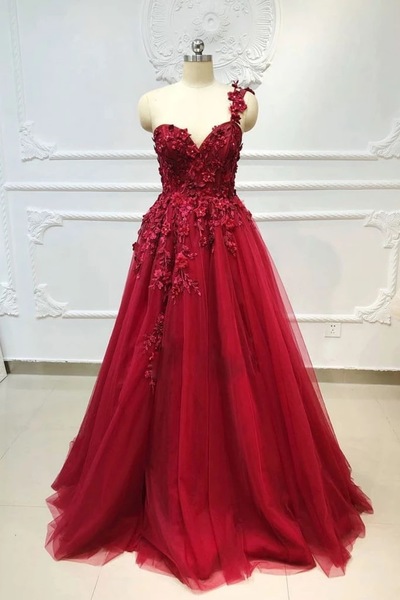 FYD100,Sweetheart Burgundy Tulle Lace Long Prom Dress, Homecoming Dress