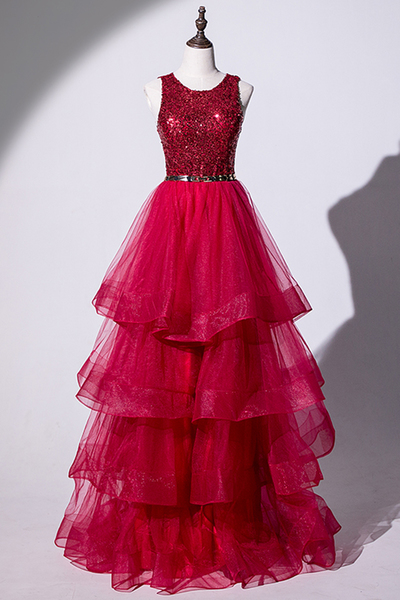 FYD107,Burgundy Tulle Sequins Long V Neck A Line Prom Dress, Prom Gown