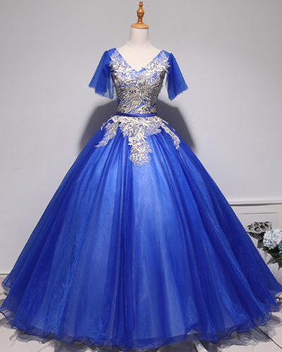 FYD117,New Arrival Royal Blue Tulle Lace Long Prom Dress, Royal Blue Evening Dress