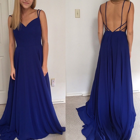 FYD119,Pretty blue prom dress,A-line V-neck chiffon long prom dresses,evening dress,party dress