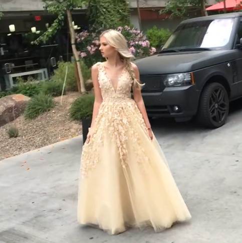 FYD121,Attractive gold prom dress,A-line V-neck applique long prom dresses,formal gown,evening dresses