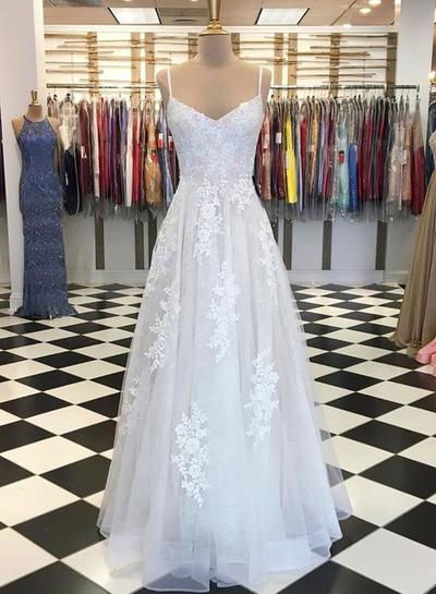 FYD171,White Lace Tulle Long Summer Prom Dress, Evening Dress