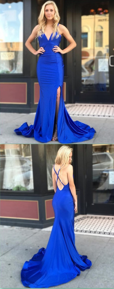 FYD182,Royal Blue Mermaid Backless Prom Dress,Prom Dreses Long