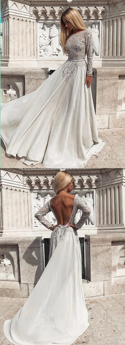 FYD183,Long Sleeve Beaded Silver Prom Dress ,evening dresses