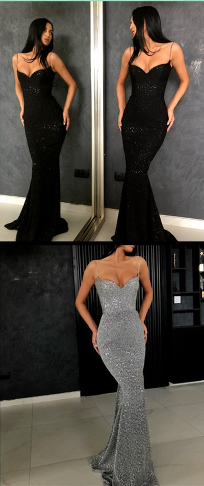 FYD190,Real Made Spaghetti Straps Sequins Long Prom Dress