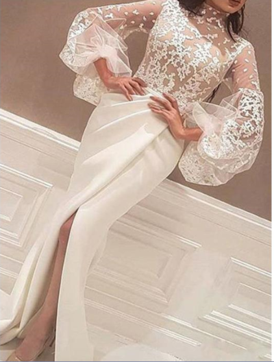 FYD205,Long Sleeve Lace High-Neck Long Prom Dress