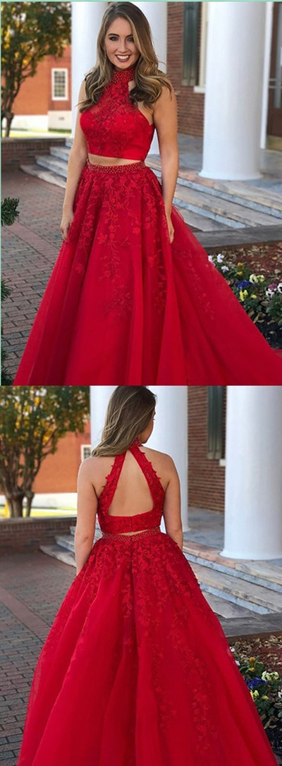 FYD208,Two Pieces Ball Gown Long Red Prom Dress
