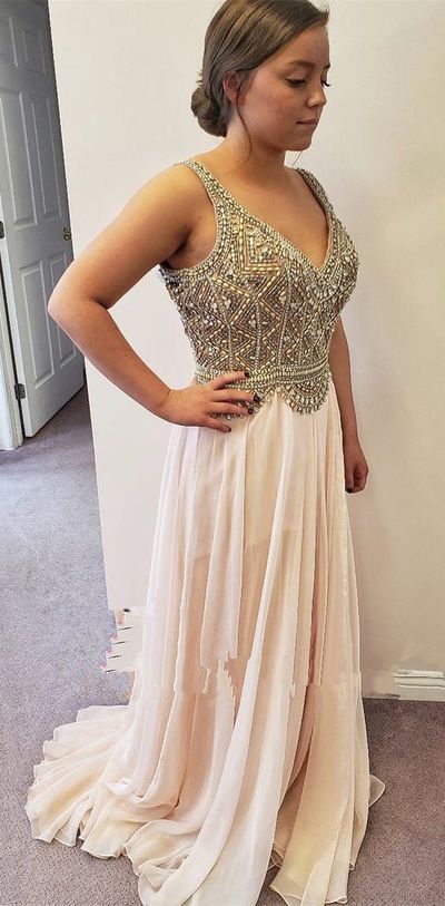 FYD210,V-Neck Heavy Beaded A-line Long Prom Dress