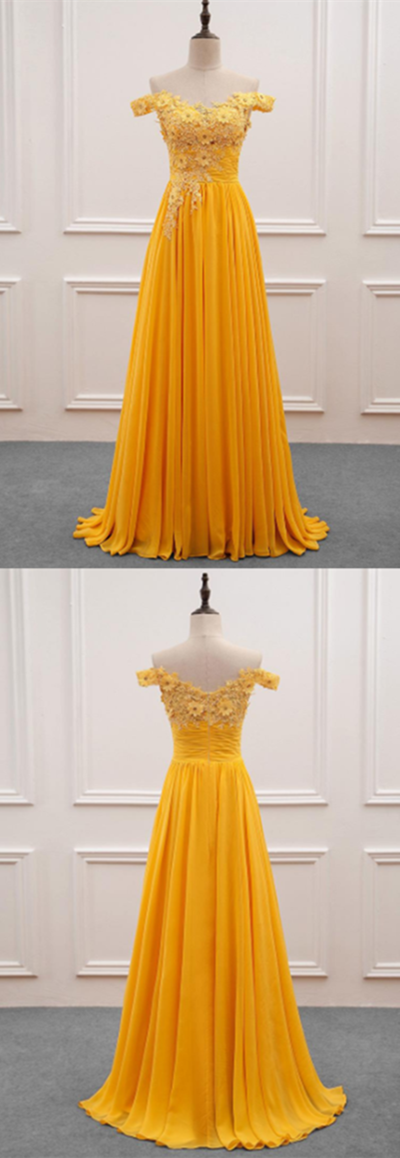 Yellow A-Line Appliques Long Prom Dress