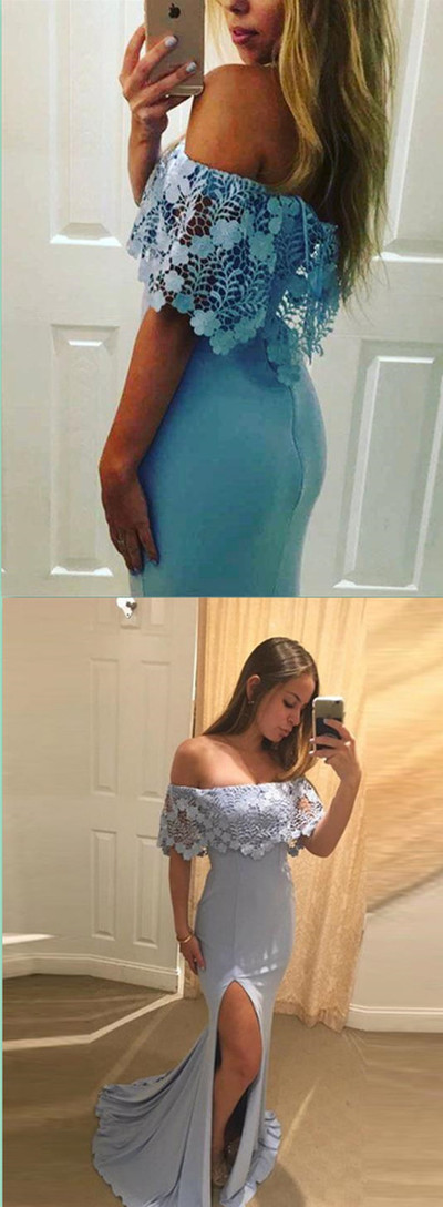 Off the Shoulder Mermaid Sky Blue Long Prom Dress