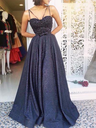 Spaghetti Straps A-Line Dark Navy Prom Dress