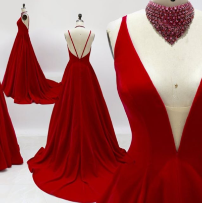 Red Long Prom Dress with Royal Train,Evening Dress,Prom Dresses