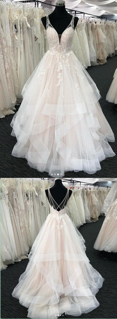 V-Neck Backless Wedding Dresses,Wedding Dress,Custom Made Wedding Gown,