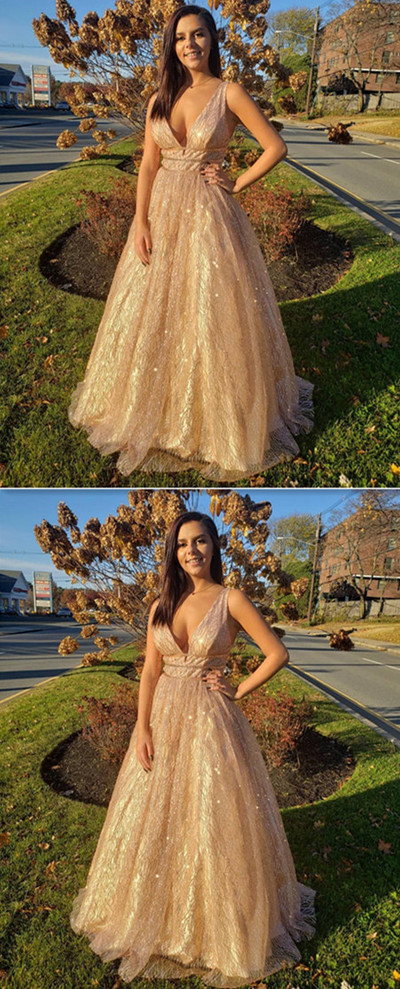V-Neck Sparkly Sequins Long Prom Dress,Evening Dress,Prom Dresses