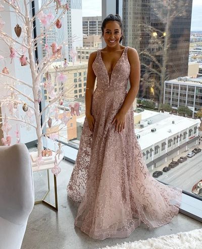 V-Neck Lace Long Prom Dress,Evening Dress,Prom Dresses