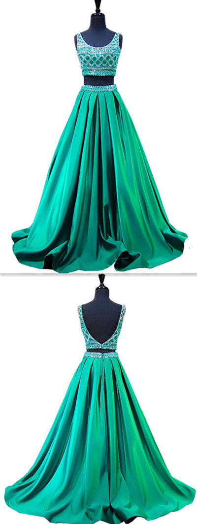 Two Pieces Beaded Prom Dress,A-Line Evening Dress,Prom Dresses