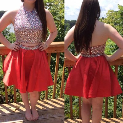 FYD 340,Two Pieces Red Homecoming Dress , Short Prom Dress,Back to Schoold Party Gown