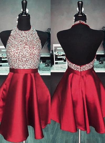 FYD 359,Red Backless Homecoming Dress, Short Prom Dress,Back to Schoold Party Gown