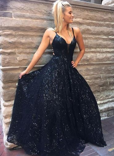FYD 406,Stylish Navy Blue Lace V Neck Open Back Long Prom Dress, Evening Dress