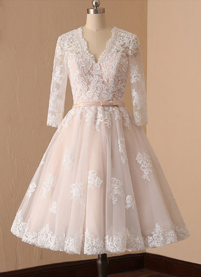 FYD 407,Creamy Tulle Lace Short Prom Dress, Bridesmaid Dress With Sleeves