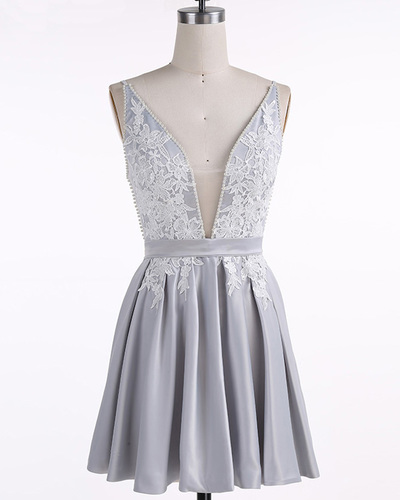 FYD 418,Gray Chiffon V Neck Backless Short Prom Dress, Bridesmaid Dress