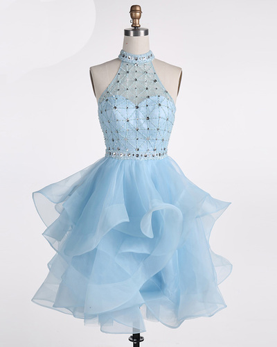 FYD 419,Ice blue Tulle Strapless Short Beaded Prom Dress, Homecoming Dress