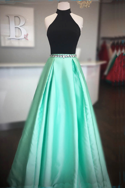 FYD 434,Simple black and mint satin long open back prom dress, homecoming dress