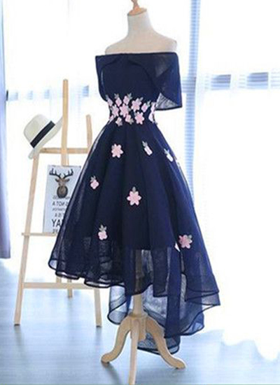 FYD 436,Navy blue chiffon off shoulder high low homecoming dress, party dress