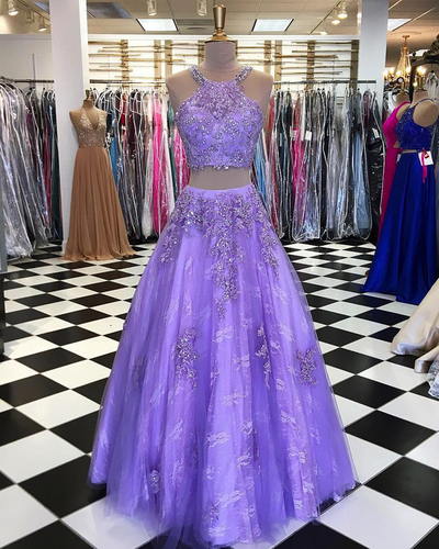 FYD 438,Lavender lace two pieces strapless customize long homecoming dresses
