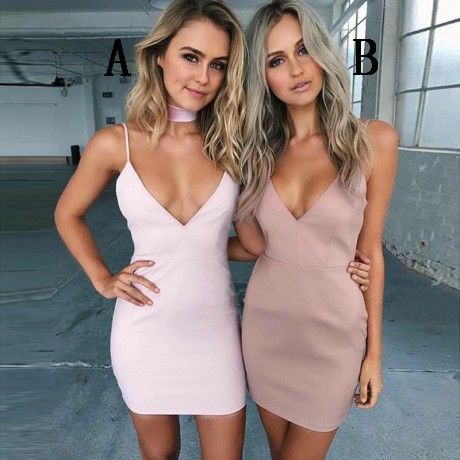 FYD 444,Curvy Pearl Pink Spaghetti Strap V Neck Homecoming Dress