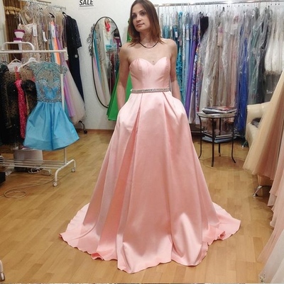 FYD 461,Pink Sweetheart Floor Length Prom Dresses with beading waist