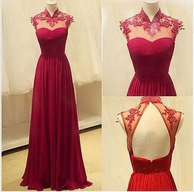 FYD 466,High Neck Red Open Back Long Prom Dresses