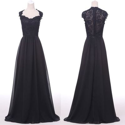 FYD 467,Simple Black Lace Bodice Long Tulle Prom Dresses