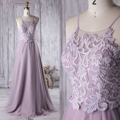 FYD 469,Lavender Halter Long Tulle Prom Dresses with Applique