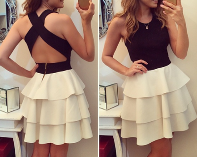 FYD 496,Simple Black and White X-back Short Homecoming Dresses with Layers,