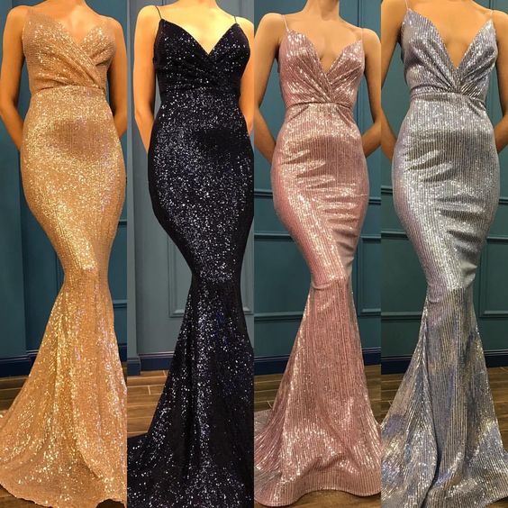 FYD499,Elegant Sparkly Straps Mermaid Long Sparkly Unique Deign Sexy Prom Dresses