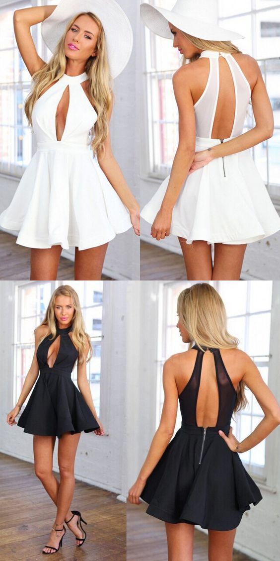 FYD 544,Mini Short Prom Dress, Simple Round Neck Homecoming Dress, White and Black Short Homecoming Dress