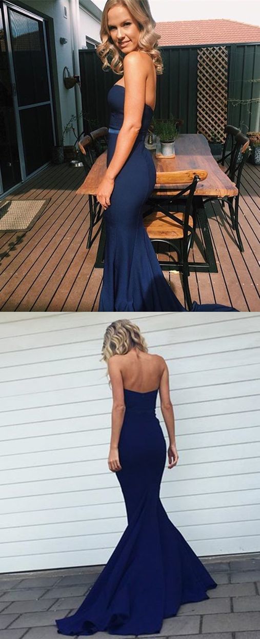 FYD559,Mermaid Sweetheart Backless Sweep Train Dark Blue Bridesmaid Dress