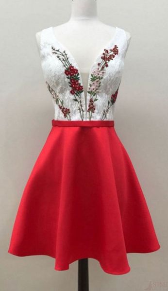 FYD 578,A Line Sleeveless Satin Prom Dress with Appliques, Short Cute Homecoming Dress with Appliques