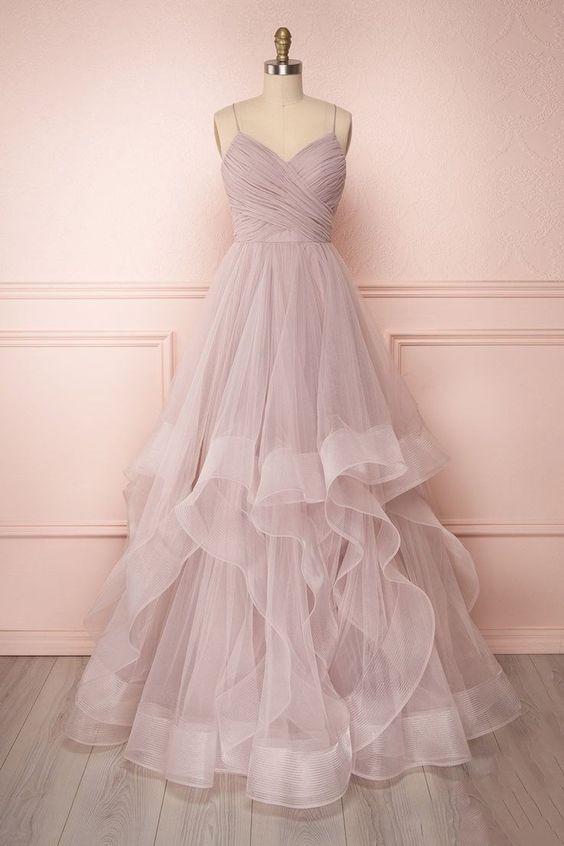 FYD 665,pink sleeveless v-neck ruffles prom dress,tulle spaghetti-straps evening dress