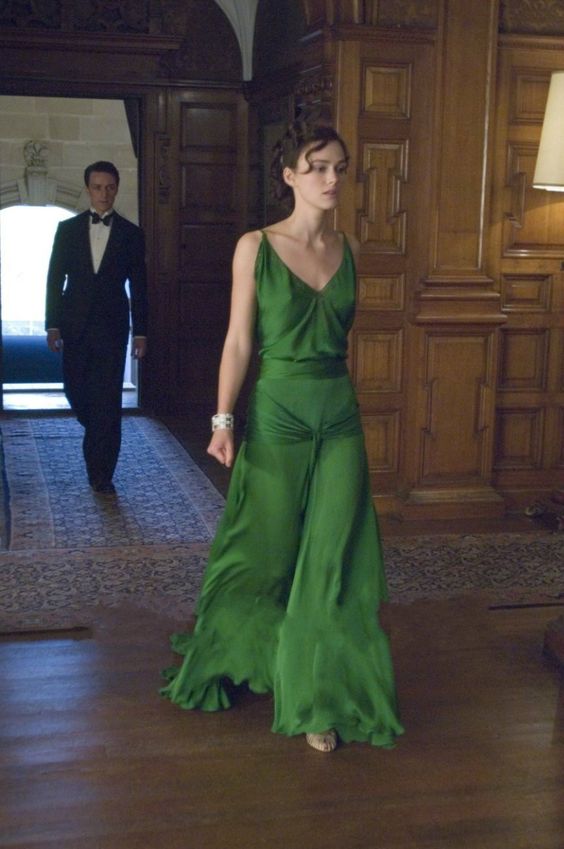 FYD 705,Elegant Green V Neck Backless Long Celebrity Dresses on Keira knightley from the Movie Court Train Formal Gowns for Wom/ new fashion